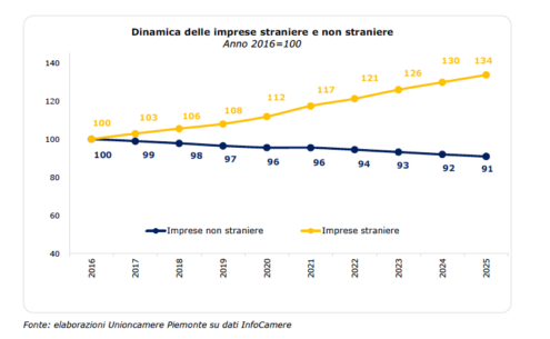 In un Piemonte dove il tessuto imprenditoriale e commerciale tradizionale mostra segni di stanchezza, la componente straniera continua a correre, con la provincia di Cuneo che si attesta come la realtà più dinamica dell'intera regione. Secondo gli ultimi dati elaborati da Unioncamere Piemonte relativi al 2025, la Granda ha registrato la performance più vivace del territorio regionale, mettendo a segno un balzo del +5,7% nel numero di imprese straniere rispetto all'anno precedente. Un dato che stacca nettamente la media regionale (+3,0%) e che contrasta con la flessione registrata dalle imprese "autoctone" cuneesi, calate dell'1,3% nello stesso periodo. A fine 2025 si contano 55.434 imprese straniere registrate in Piemonte, con una crescita annuale del 3,0% (+ 1.600 unità in dodici mesi), un dato positivo che si scontra con la sofferenza registrata dal resto del sistema imprenditoriale che chiudendo l'esercizio con una variazione negativa dell’1,2%.